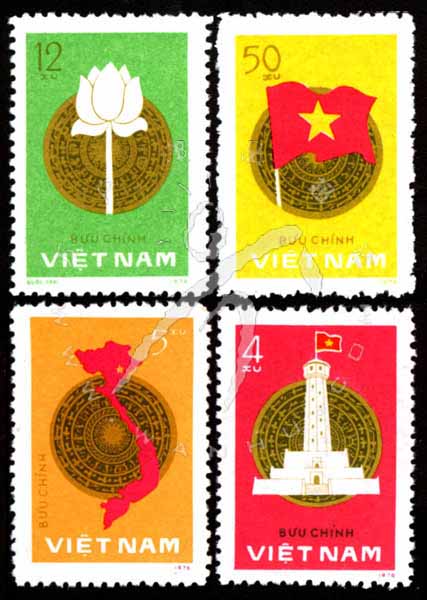 国会普选1周年,升龙塔、铜鼓、越南地图、国旗、国花—荷花4全
