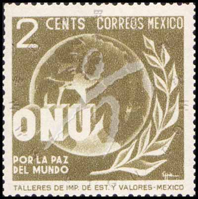 Sc#813 联合国,世界和平象征图及橄榄枝2c (6-1) 1枚