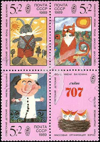 Sc#-B171a 列宁儿童基金会,儿童画附捐票5k+2k 3联+1枚附票