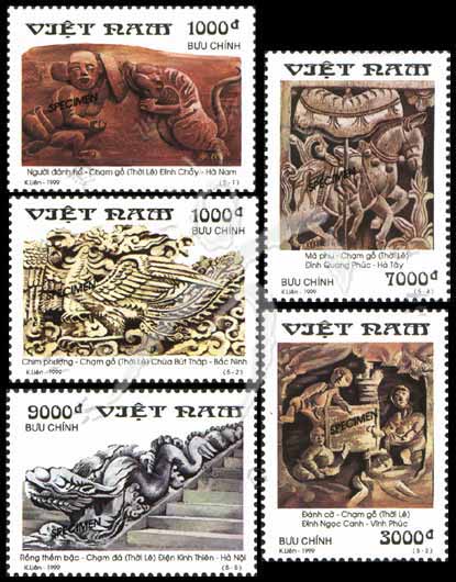 越南古代雕刻龙、马等样票5全