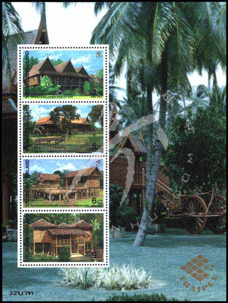 泰国1997年邮展,泰国民居小全张(4票)