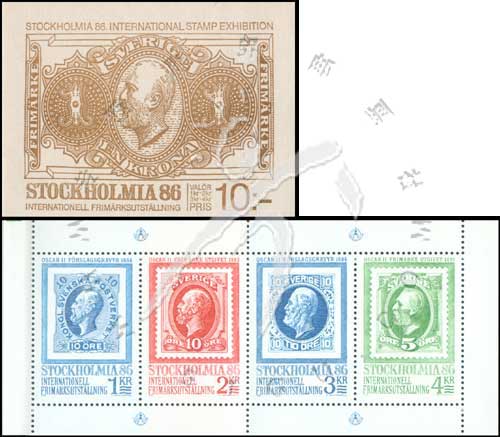 瑞典国王奥斯卡二世肖像小本票(4票,为斯德哥尔摩1986世界邮展发行)