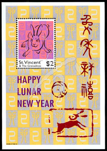 兔年生肖,兔简笔画及中文书法小型张