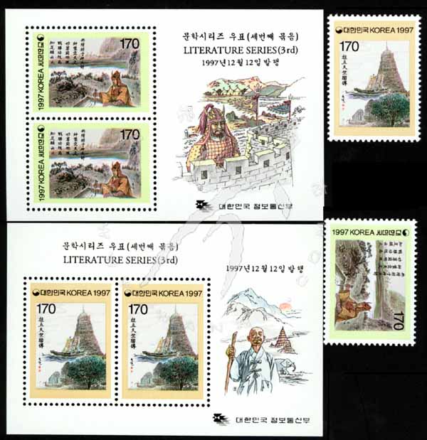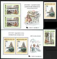 韩国文学系列三,《与隋将于仲文诗》和《往五天竺国图传》诗词及绘画2全+2枚小全张(各2票)