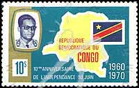Sc#663 独立10周年,蒙博托总统、地图、国旗10s (7-1) 1枚