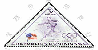 Sc#486 奥运女子花样滑冰冠军美国特·阿尔伯兰特三角票3c (8-3) 1枚