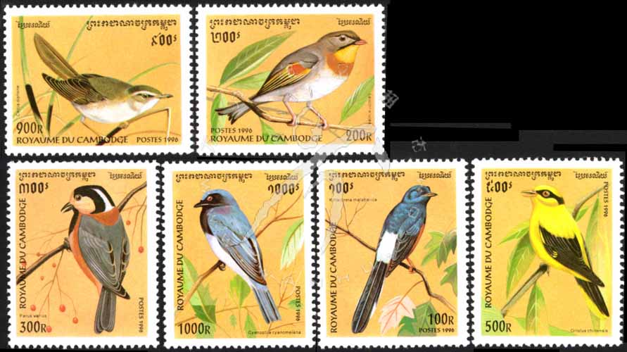 鸟,红嘴相思鸟、杂色山雀、黑枕黄鹂、日本树莺及白腹鹟等6全