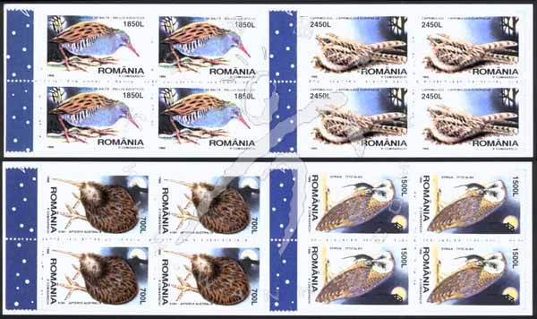 夜鸟,褐几维鸟、仓鸮、普通秧鸡及欧夜鹰2枚小本票(4套共16票)