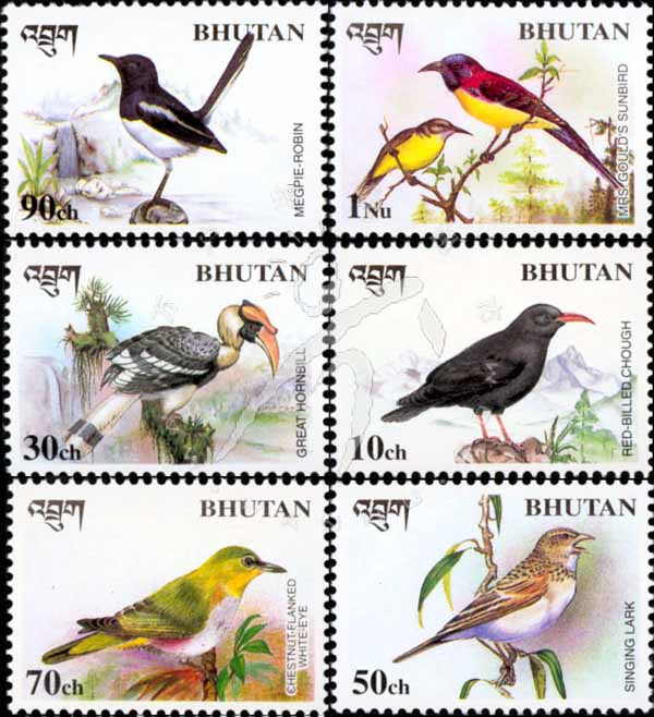 鸟类,红嘴山鸦、双角犀鸟、云雀、红胁绣眼鸟、鹊鸲及蓝喉太阳鸟6全