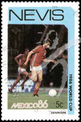 邮票介绍:Sc#479 (SG#391) 墨西哥世界杯赛,丹麦足球队员5c (12-3) 1枚