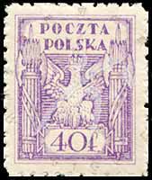 邮票介绍:Sc#101 波兰鹰徽普票(波兰北部用)40f 1枚
