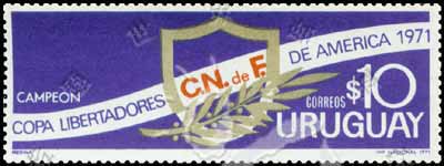 Sc#810 乌队获美洲足球“解放者”杯,队徽及月桂枝10p 1全