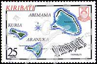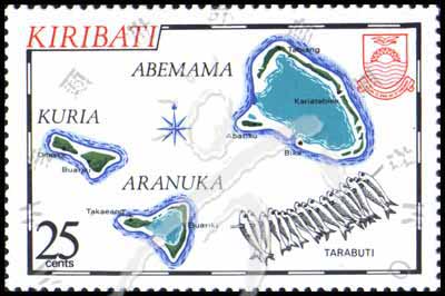 邮票介绍:Sc#423 阿贝马马岛、Kuria、阿拉鲁卡岛屿分布地图25c (4-2) 1枚