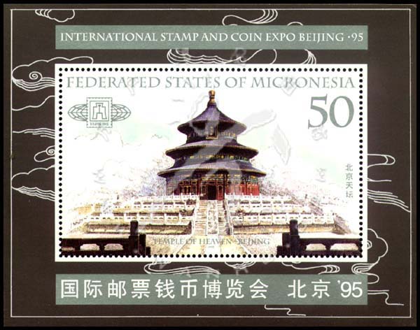 北京1995国际邮票钱币博览会,徽志及天坛小型张