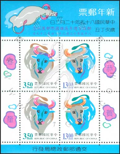 牛年生肖,卡通牛邮政百年高雄国际邮展小全张加字(2套共4票)