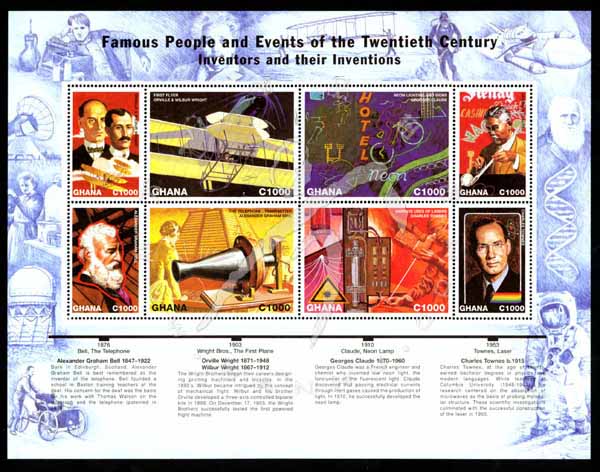 发明家,莱特兄弟和飞机,贝尔和电话,激光和陶纳斯,霓虹灯和克劳德小版张