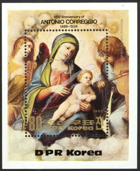 画家柯列乔逝世450周年,绘画《圣母子和天使》小型张