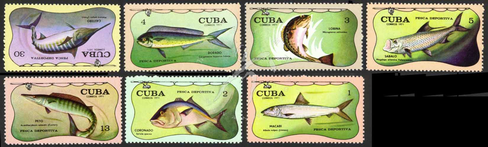 鱼类,北梭鱼、鰤鱼、大口黑鲈、鲯鳅、大西洋大海鲢、刺鲅鱼及枪鱼7全