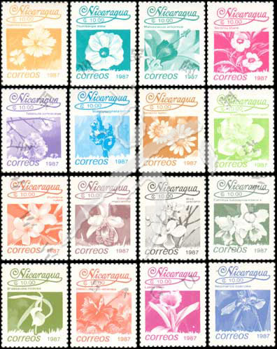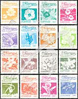 本地花卉,胭脂树、兰花夜夫人、嘉德丽雅兰、旋籽木科花卉、扶桑、悬铃花、蓝色巴西鸢尾、鸡蛋花及千里光等普票16全