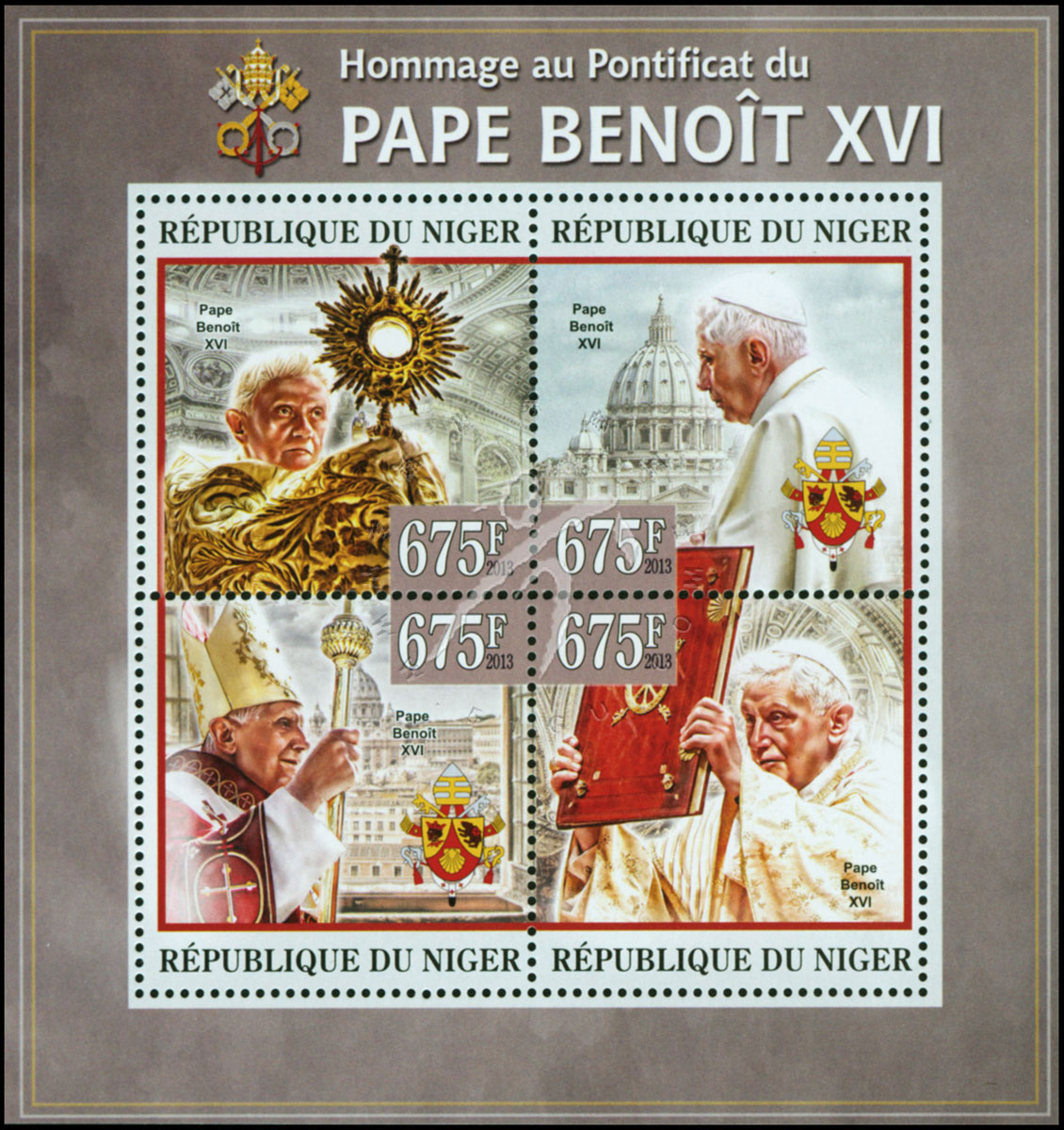教宗本笃十六世,徽志及肖像小全张(4票)