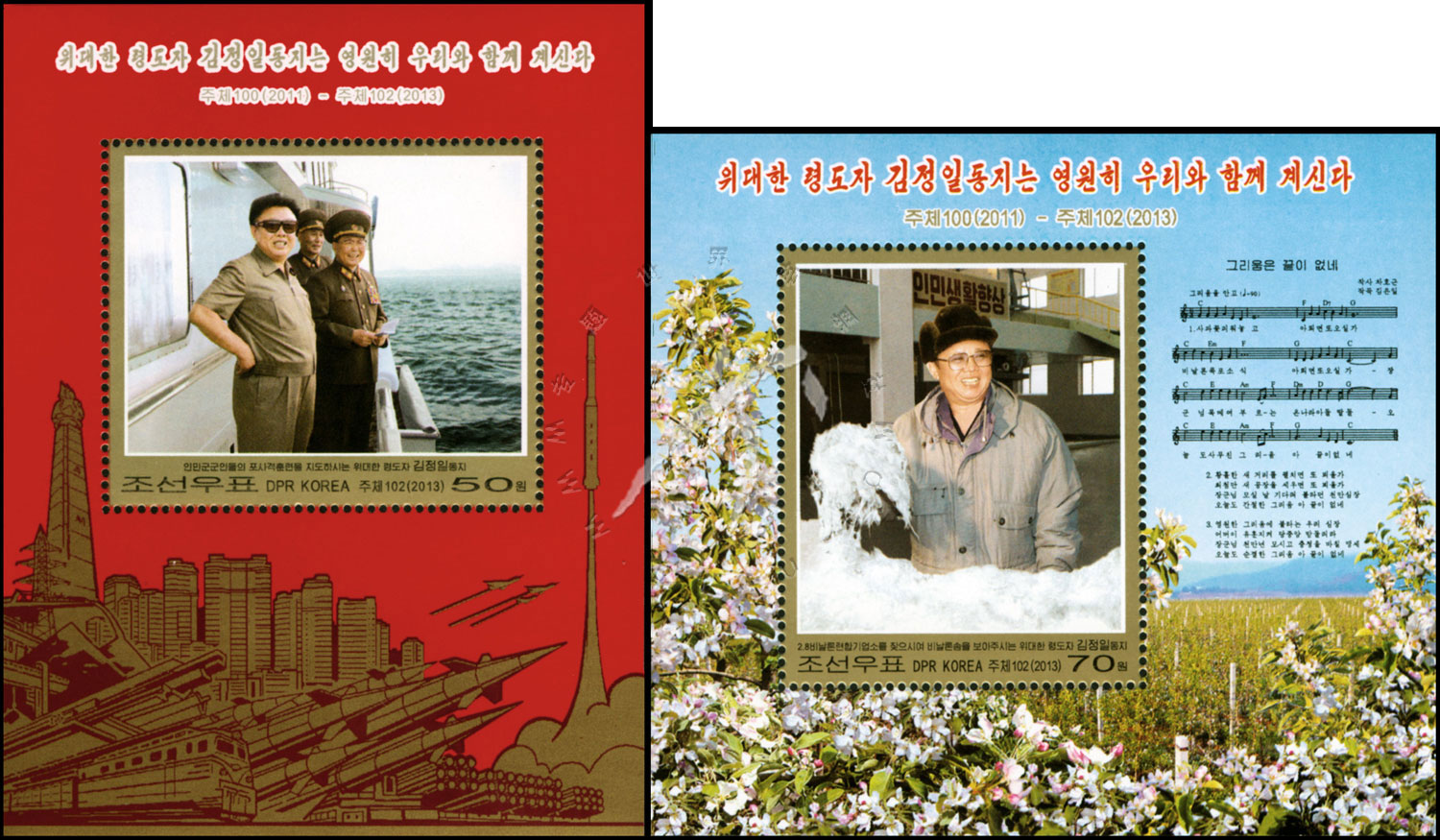 伟大领袖金正日永远与我们在一起,经典照片等2枚小型张