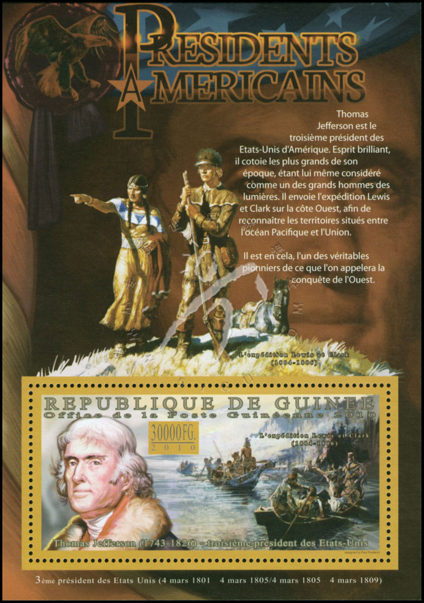 美国第3任总统托马斯·杰斐逊,肖像及其发起的刘易斯与克拉克远征小型张