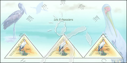 鸟类,黄嘴鹳三角形票小版张(3票)