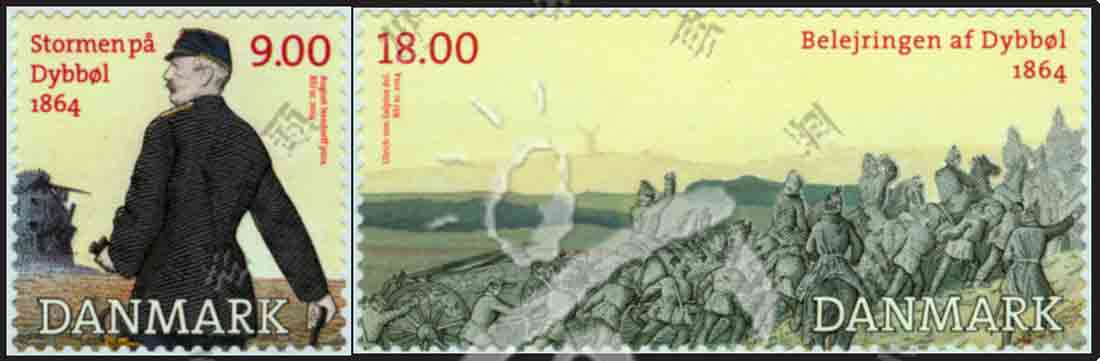 迪伯尔战役150周年,围攻迪伯尔的普鲁士军队及在此次战役撤退中阵亡的丹麦将军不干胶自贴票2全