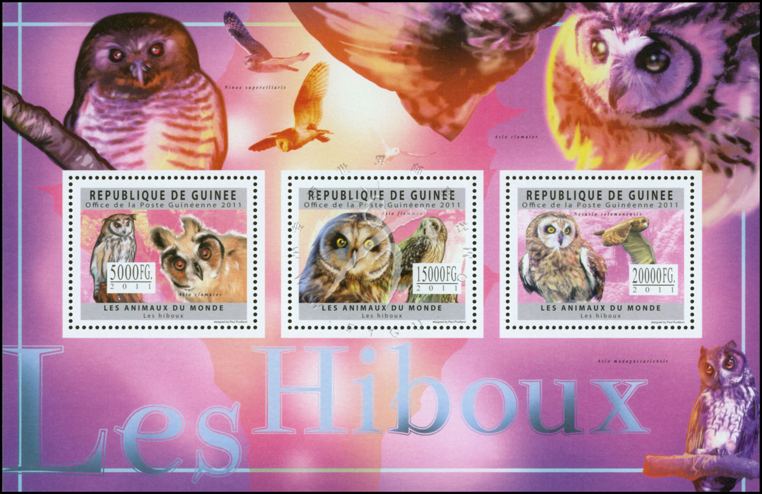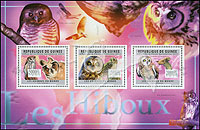 鸟类—猫头鹰,纹鸮、短耳鸮及恐鸮小版张(3票)