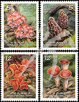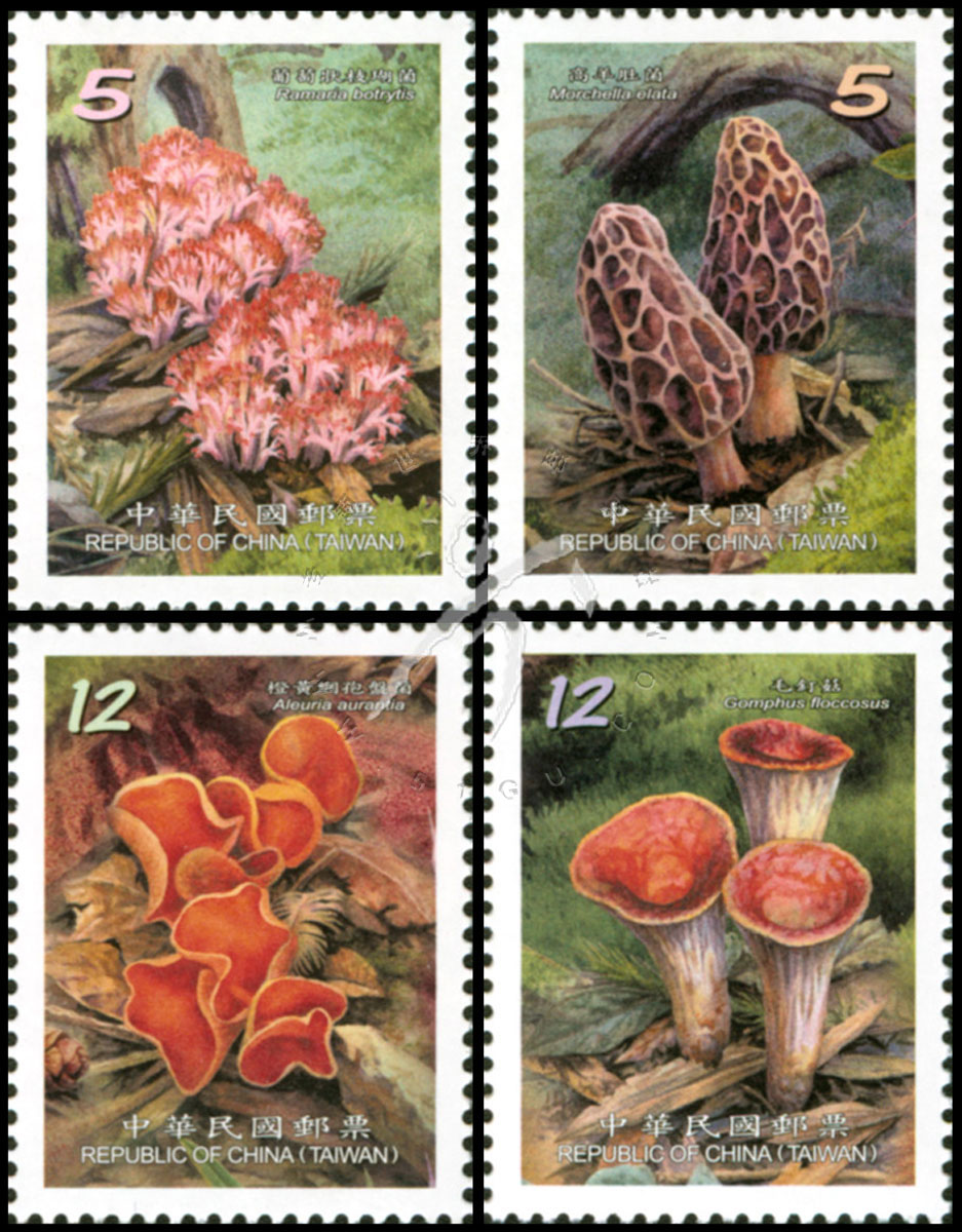 台湾野生蘑菇系列三,葡萄状枝瑚菌、高羊肚菌、铆钉菇及橙黄网孢毒菌4全