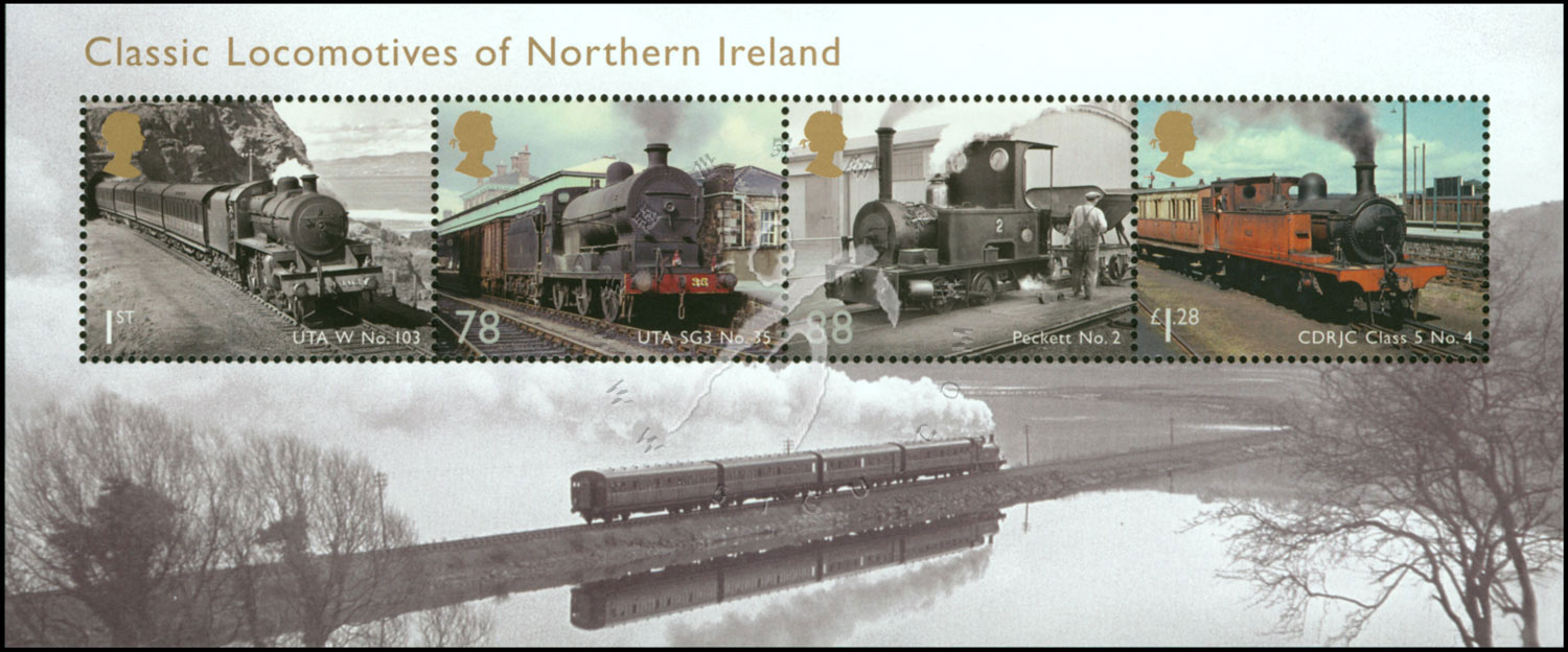 北爱尔兰的老火车,UTA铁路公司的W级103号机车、SG3级35号机车、Peckett机车和CDRJC5级4号机车小全张(4票)
