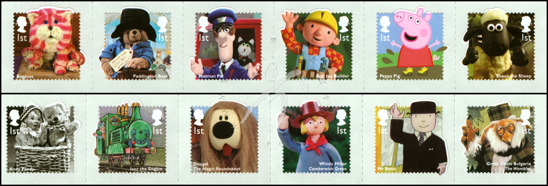 经典儿童电视节目,粉红猪小妹、布袋肥猫、邮递员派特叔叔和黑白猫杰斯不干胶自贴票12全