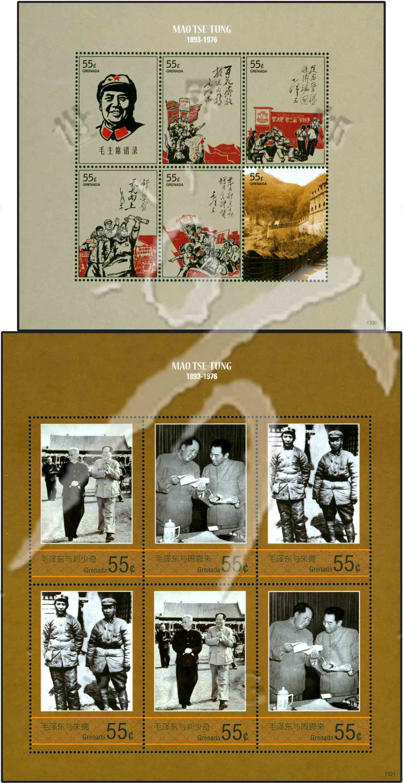 毛泽东诞生120周年,毛泽东语录及与国家其他领导人合影2枚小全张(各6票)(我社已售缺)