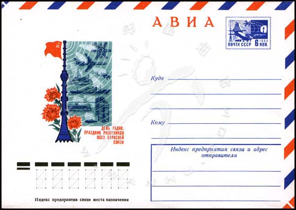 无线电节及邮电职工节,发射塔、国旗、飞机、轮船及卫星邮资封1全