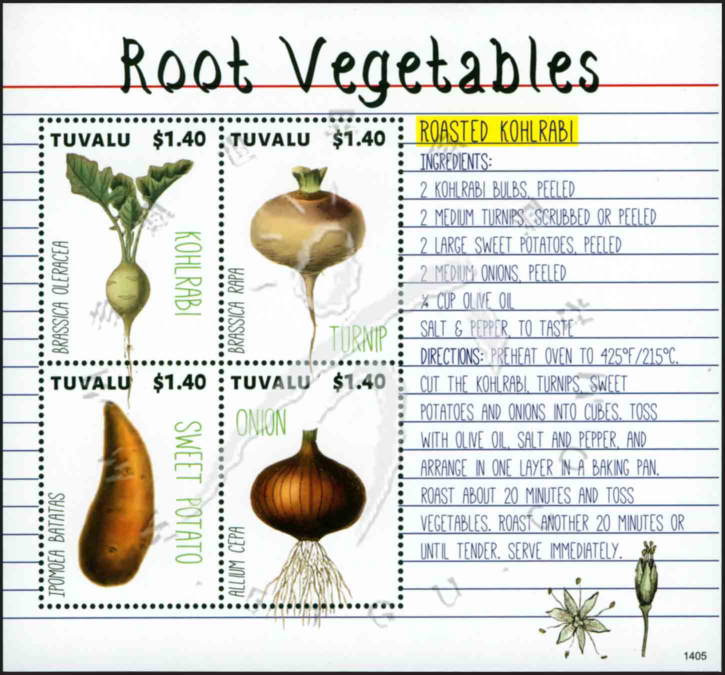 根用蔬菜二,大头菜、芜菁、甘薯、洋葱及烤大头菜制作说明小版张(4票)