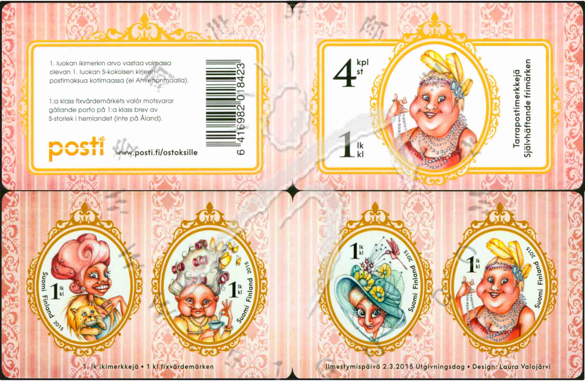 国际妇女节,镜子前艳丽的女士不干胶自贴小本票(4票)