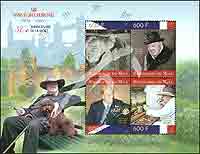 英国前首相丘吉尔逝世50周年,生前肖像小全张(4票)