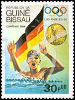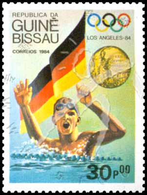 Sc#616 洛杉矶奥运游泳金牌得主东德米歇尔·格若斯30p (7-6) 1枚