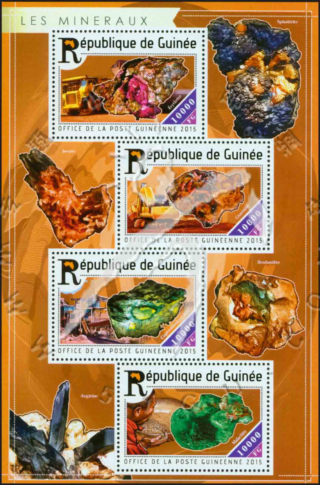 矿石,钴华、铬铅矿、硅铜铀矿及孔雀石小全张(4票)