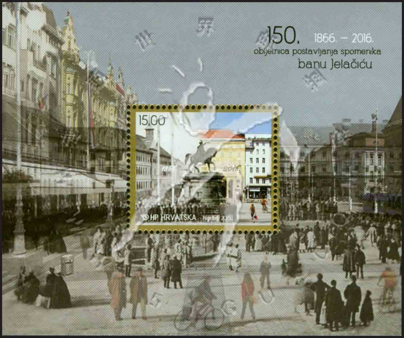 克罗地亚班·约瑟夫·耶拉西奇总督雕像150周年,雕像及大教堂小型张
