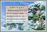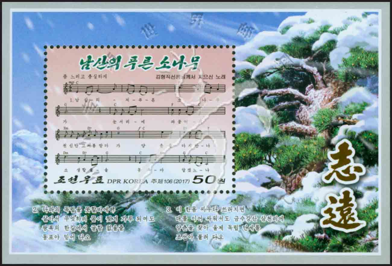 歌曲“南山上的绿松树”,曲谱及绿松小型张