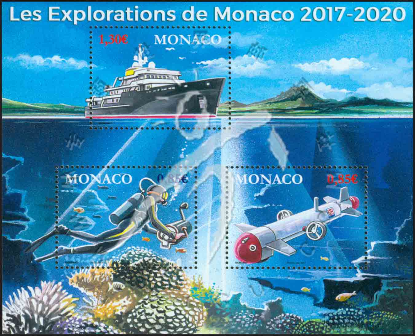 探索摩纳哥,轮船、潜水及水下探索小全张(3票)