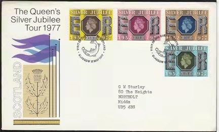 英国1977年伊丽莎白女王登基25周年(4票)首日实寄封