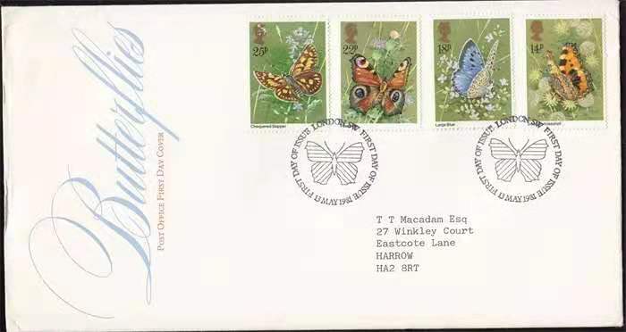 英国1981年蝴蝶(4票全)首日实寄封