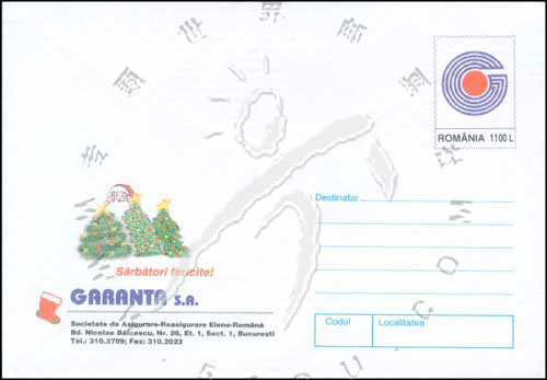 罗马尼亚保险协会,会徽及圣诞老人邮资封1全