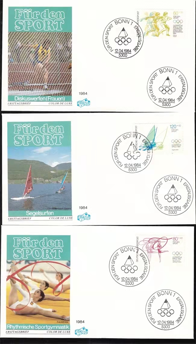 德国1984年笫23屆奥运会和残奥会花样体操、帆船、鉄饼等首日封(3封3霁全)