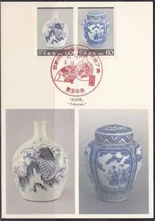 日本1986年一次传统工艺—青花瓷(双票)极限片1全