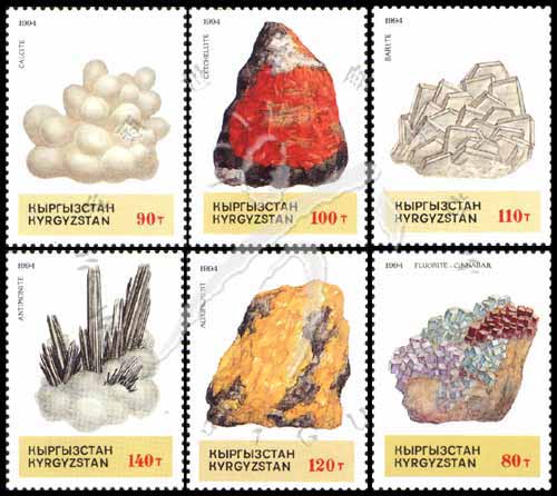 矿石,萤石、方解石、硫砷锑矿、重晶石、雌黄及辉锑矿6全