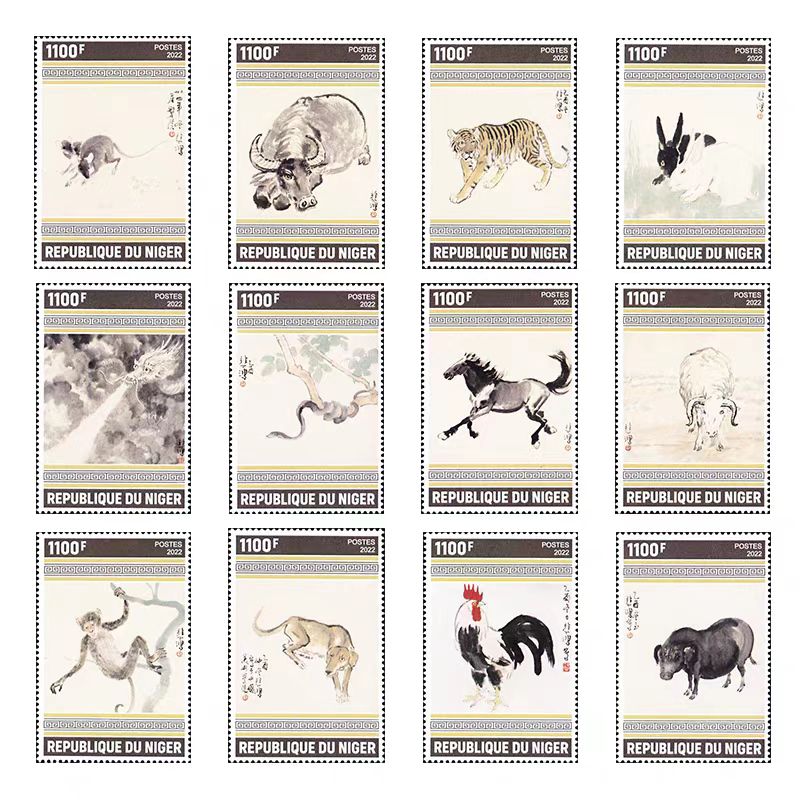 尼日尔2022年徐悲鸿十二生肖画邮票12全大全套