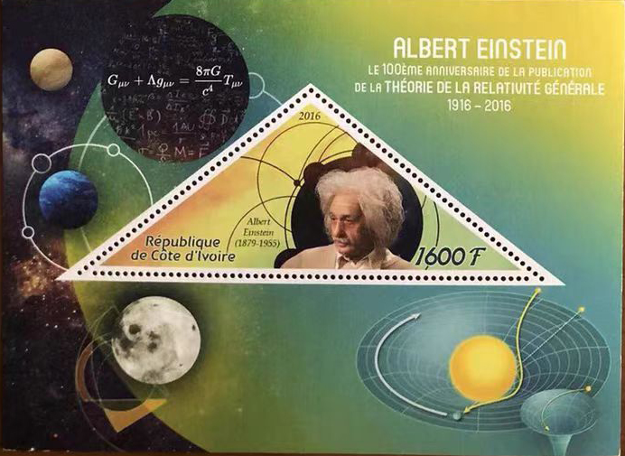科特迪瓦2016年爱因斯坦与相对论三角形邮票小型张